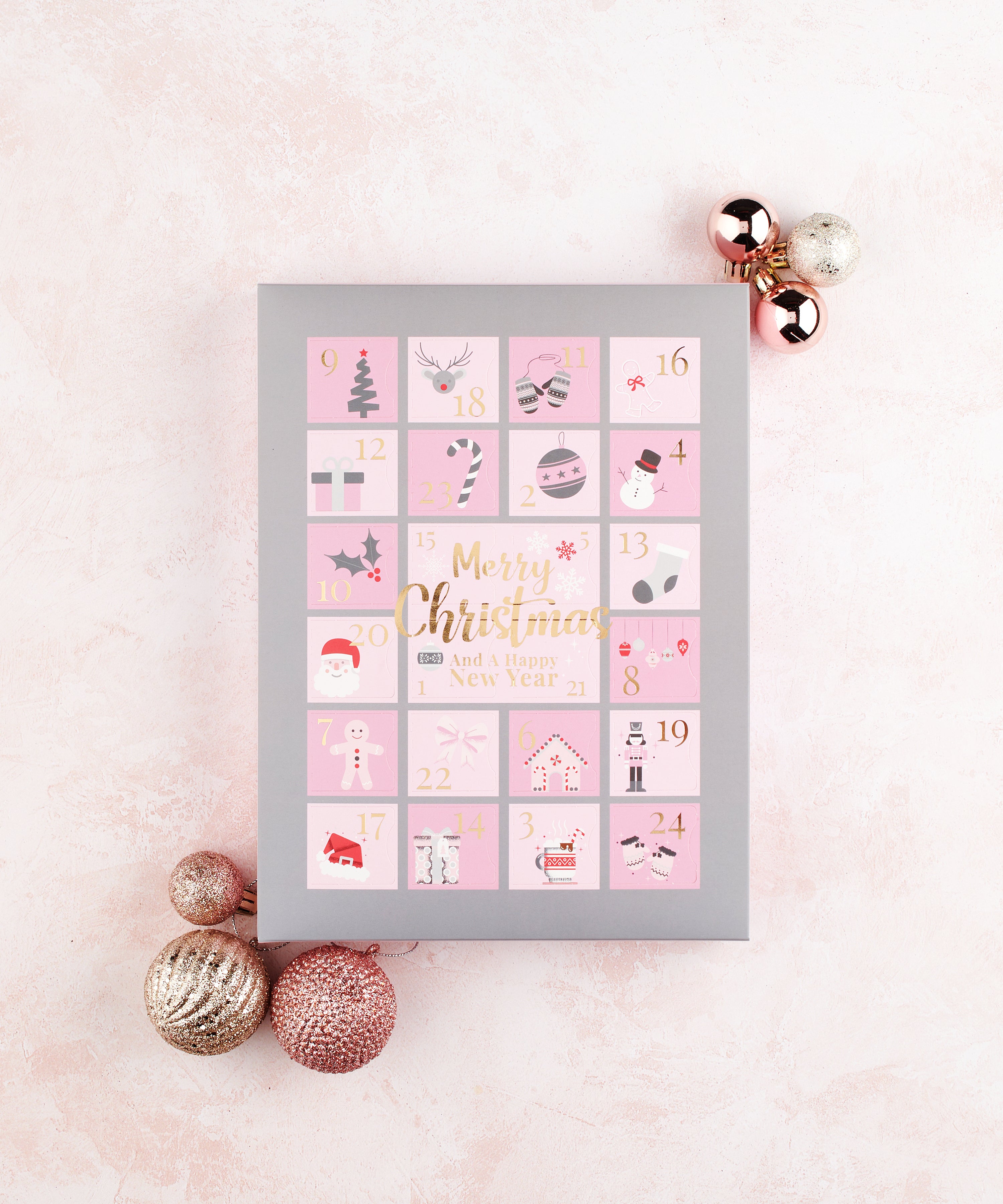 Designed using our beautiful pink, gold and grey branding, each pink door hides a delicious filled chocolate including festive specials.